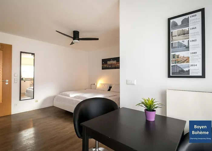 La cocina dispone de un hervidor eléctrico, nevera y un horno. Los huéspedes que se alojen en el apartamento podrán disfrutar de la comodidad de tener a su disposición servicio de tetera/cafetera. El restaurante Hackethal's, situado cerca del alojamiento, sirve comida alemana. El aeropuerto Berlín-Brandeburgo Willy Brandt se encuentra a 35 km del Boyen Boheme Apartments, mientras que a la estación de metro Schwartzkopffstrasse se llega en sólo 10 minutos a pie.